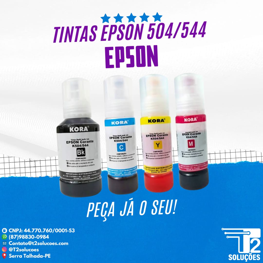 O Kit Refil Bulk Ink Kora T504/T544 com 4 cores (Preto, Ciano, Magenta e Amarelo) é a solução ideal para quem busca impressões de alta qualidade com economia. Cada frasco contém 70ml de tinta premium, desenvolvida para garantir cores vivas, excelente rendimento e compatibilidade com diversos modelos de impressoras Epson.